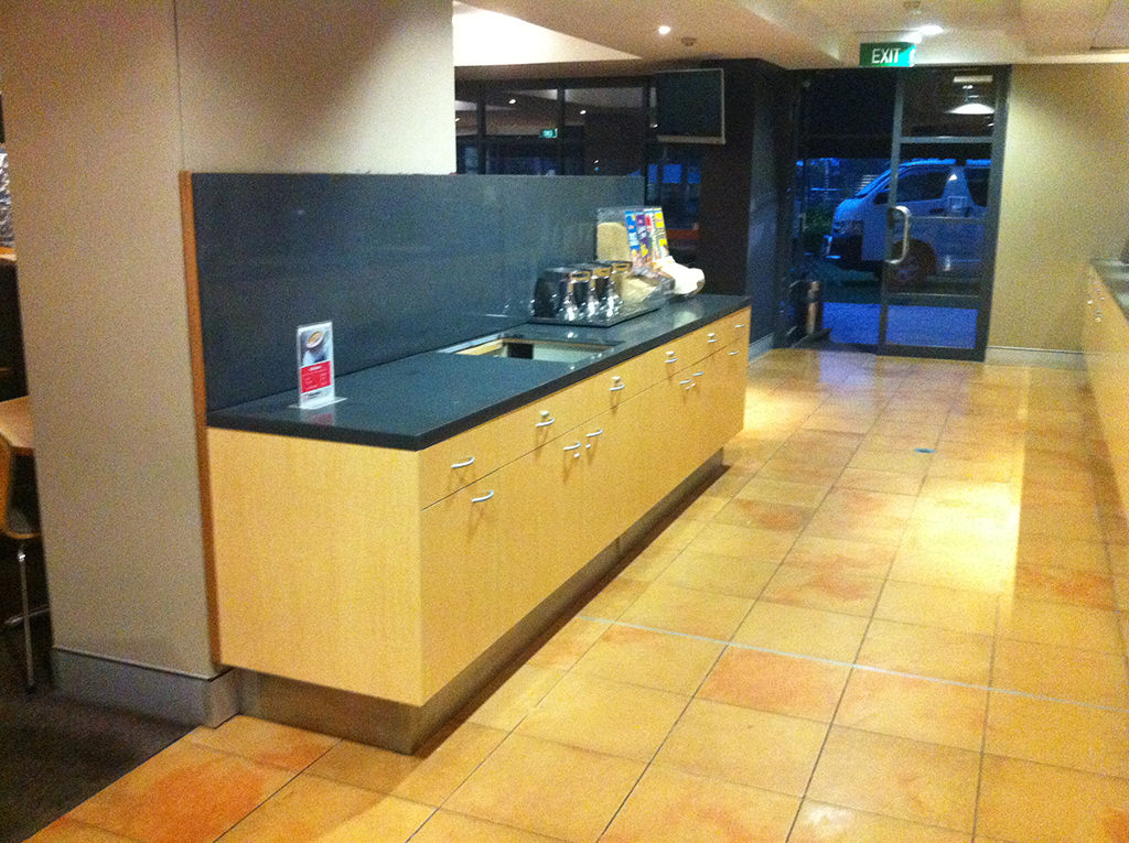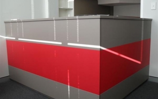 We work with a diverse range of materials ie; veneered and polyurethane finished panel board, aluminium, stainless steel, and stone and corian products for benchtop surface finishes.